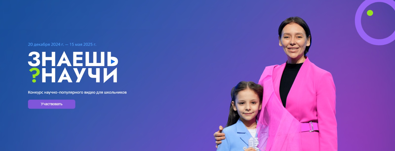 Подходит к концу прием заявок на конкурс «Знаешь?Научи!»11 апреля завершается прием заявок на 4 сезон конкурса научно-популярного видео «Знаешь?Научи!». Участие в нем дает возможность талантливым школьникам в возрасте от 6 до 18 лет проявить себя в роли научно-популярных блогеров, обменяться опытом и найти новых друзей.